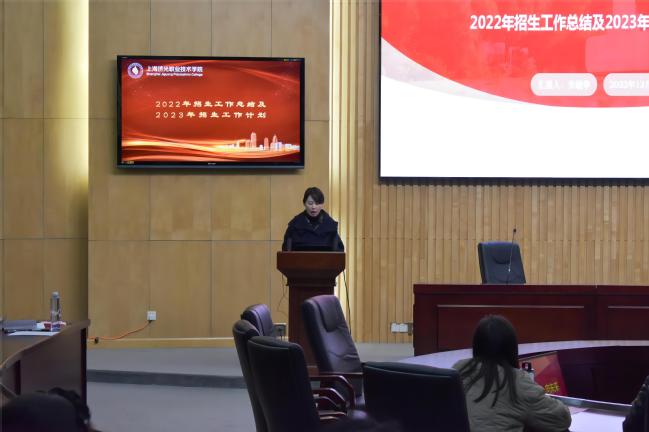 首先,招生办副主任朱敏华在会上作了《守初心·聚能量·向未来》为主题的招生汇报。2022年,我校积极应对新高考改革以及复杂多变的招生严峻形势,全校上下齐心协力,圆满完成各阶段招生工作任务。2023年,全校上下将坚定不移以习近平新时代中国特色社会主义思想指导各项工作,扎实推进招生工作,不断优化专业调整布局,加强专业内涵建设;要落实精准招生宣传,注重招生宣传策略;要汇聚全校智慧力量,构建全员、全方位、全过程参加招生工作,形成招生合力,用奋斗新时代的责任担当推动学校高质量发展。
