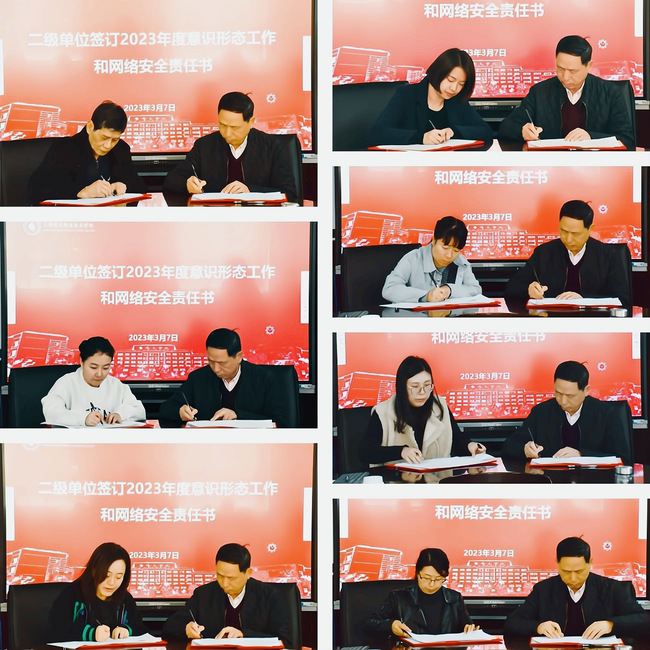 会议最后,姜富明代表学校党委与各基层党组织负责人签订了《上海济光职业技术学院2023 年意识形态和网络安全工作责任书》。