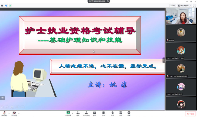 ▲ 护理学院姚淳副院长在线上为学生进行护考辅