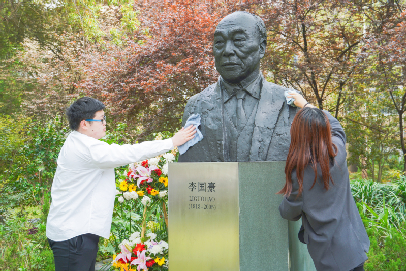 缅怀仪式上,在李国豪教授的铜像前,老师同学们依次鞠躬致敬,敬献鲜花,并轻轻擦拭铜像以表达对他的无比敬仰和深切怀念。2020级建筑工程学院学生周欣妮表示,饮水思源,济光师生永远不忘同济大学对学校建校和发展的关怀和帮助,我们要传承李国豪教授锲而不舍的匠心精神、同舟共济的爱国精神,秉承薪火之志,坚守初心使命,用实际行动走好新时代的赶考之路。2021级学前教育学院学生顾尤嘉表示,李国豪教授矢志不渝的科学精神和艰苦年代的报国之志,无愧国之英豪,校之师魂,也铸就了中国现代桥梁之魂,作为当代青年要珍惜韶华、勇挑重担,要怀抱梦想、立足脚下,在担当中历练,在尽责中成长。