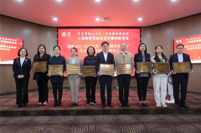 为深入学习贯彻习近平总书记关于大力弘扬劳模精神、劳动精神、工匠精神的重要论述,持续强化“劳模精神、劳动精神、工匠精神”对广大青年教师和学生的教育引领作用。近日,上海市教育工会组织开展了上海市教育系统劳模精神进校园优秀单位选树活动,4月7日以“学习贯彻二十大 劳模领跑新征程”为主题的上海教育系统首届劳模创新论坛在上海第二工业大学举行,会上宣布我校荣获2021-2022年度劳模精神进校园活动优秀组织奖。