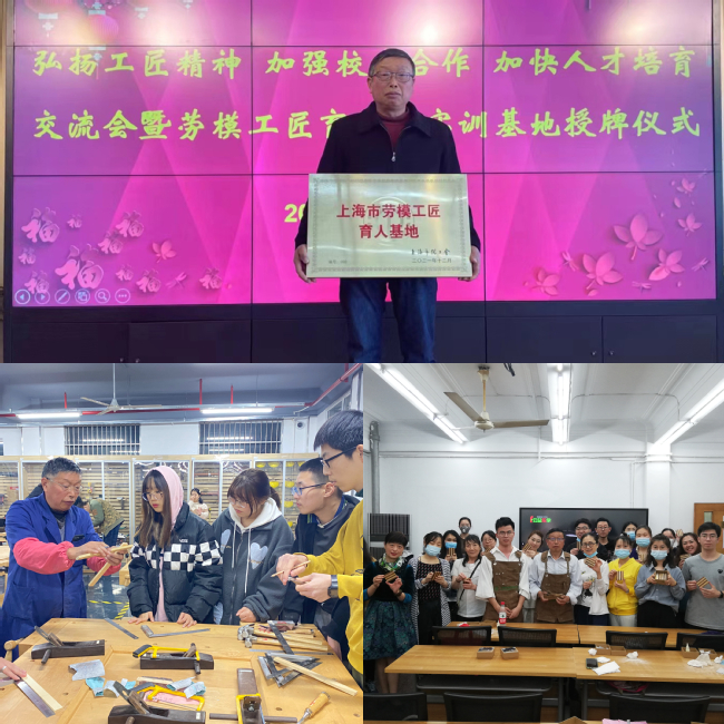 ▲我校建筑工程学院“木工大师工作室” 荣获首批“上海市劳模工匠育人基地”