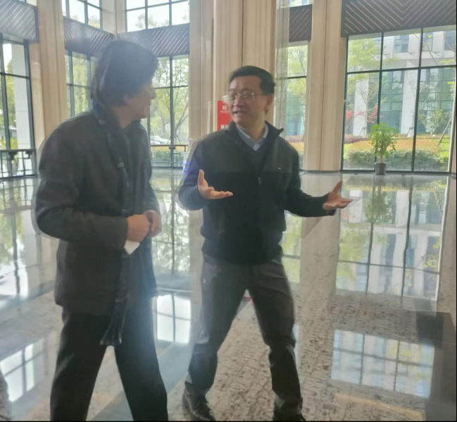 ▲阴佳教授和郑鸣总工在同济创园室内设计院亲切交流