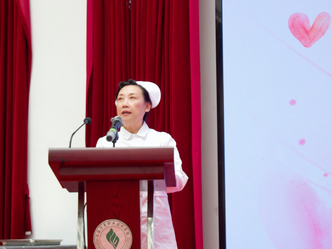 同济医院护理部主任许方蕾肯定了我校护理学院近年来的发展及学生的培养。她在讲话中提到,我校护理学院的毕业生在实际工作岗位上的临床技能和专业知识十分稳定,综合素质比较全面,展示了济光护理人的风采。同时她也对同学们送上了三点殷切的希望,希望大家要对工作和生活保持热爱,接纳并相信自己;要勇敢追梦和拼搏,为青春留下美好的记忆;要敬畏生命、关爱健康,热爱护理事业。