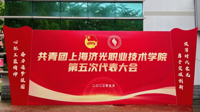 共青团上海济光职业技术学院第五次代表大会于2023年5月18日办公楼报告厅隆重召开。团市委学校工作部任浡,宝山团区委书记魏明,校党委书记姜富明,校党委副书记刘丽,副校长、工会主席王云飞,10余所兄弟高校团委书记及主要负责人,二级学院党团负责人及110位团代表们共同出席大会。