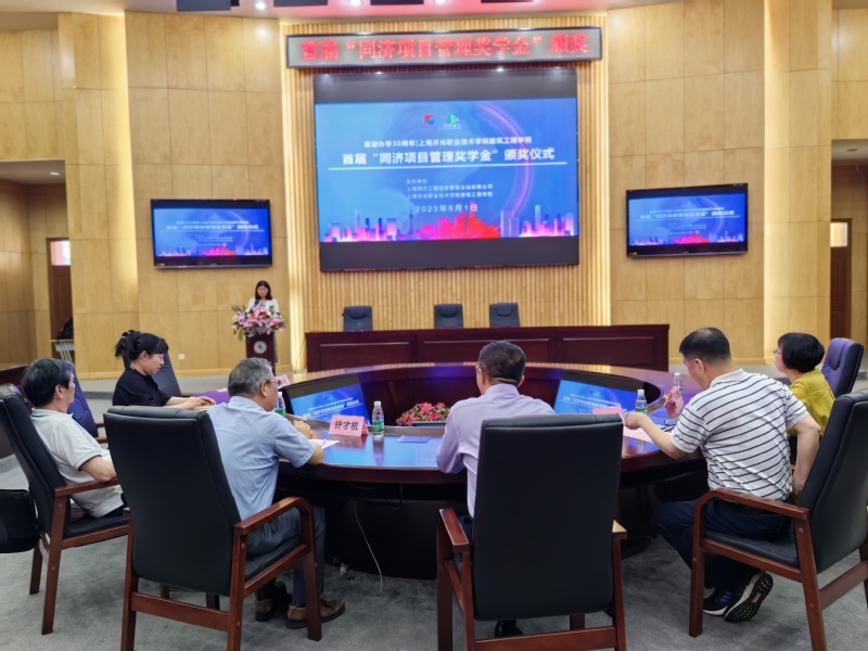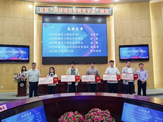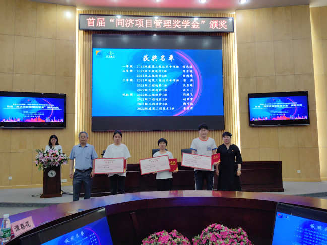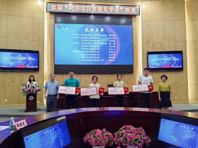 为充分发挥优秀师生的榜样示范作用,树立先进典范,创建优良学风,激励全体学生刻苦钻研、砥砺奋进。6月1日,建筑工程学院在圆形会议室举行首届“同济项目管理奖学金”颁奖仪式。上海同济工程项目管理咨询有限公司领导、建筑工程学院党政领导、设计创意学院党支部书记、建筑工程学院师生代表出席会议。