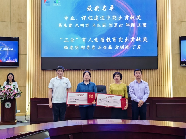 ▲王晓睿总经理和设计创意学院直属党支部书记赵培忠为获奖教师代表颁奖