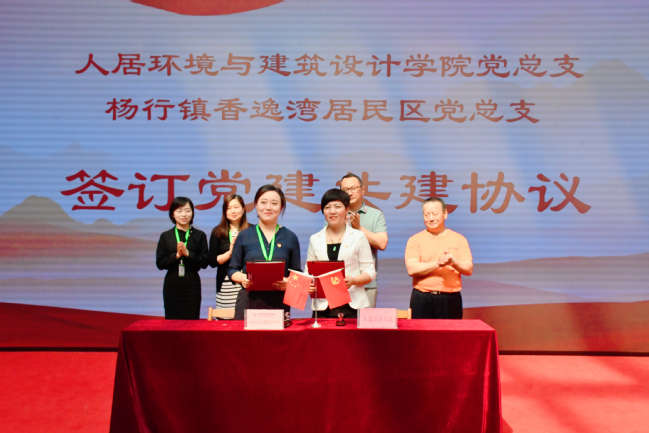 我校人居环境与建筑设计学院党总支教工党支部曾于2021年、2022年被评为上海市“党支部建设示范点”和教育部第三批“全国高校党建工作样板支部”。6月9日,人居环境与建筑设计学院党总支与宝山区杨行镇香逸湾居民区签订党建共建协议仪式暨“香逸湾社区微更新”项目中期成果汇报会在我校宝山校区学生活动中心举行。通过党建区域共建,形成校地融合育人长效机制,进一步促成该校“高校—社区”实践育人体系的形成。