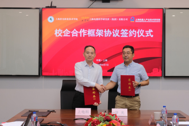 为贯彻落实《教育部办公厅关于开展第一批现场工程师专项培养计划项目申报工作的通知》文件精神,6月7日,我校与上海电器科学研究所(集团)有限公司举行了校企合作框架协议签约仪式。校长助理孙遥、上海电器科学研究所(集团)有限公司副总裁郑军奇出席,我校教务处处长王娟、人工智能学院院长陈传灿、人工智能学院直属党支部书记张航、骨干教师代表,添唯教育总经理张蕾,添唯教育技术负责人王一粟、祝轶欣等共同参会。