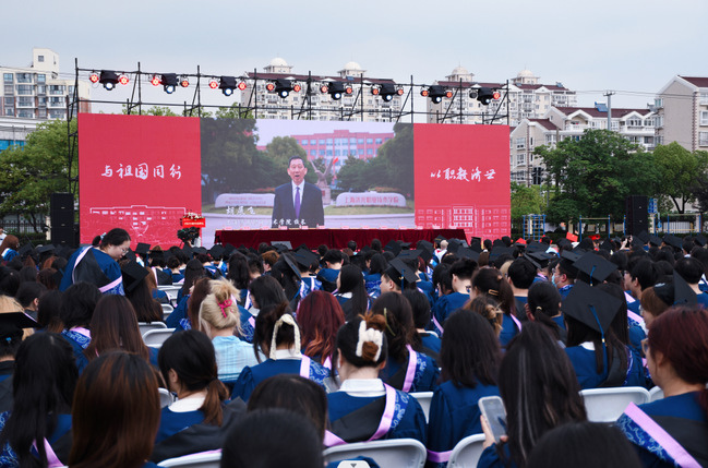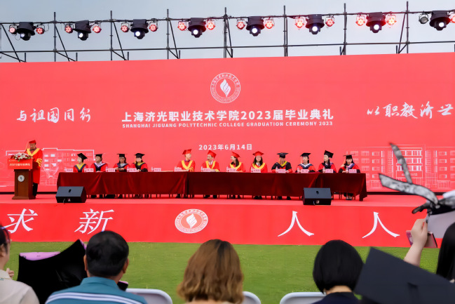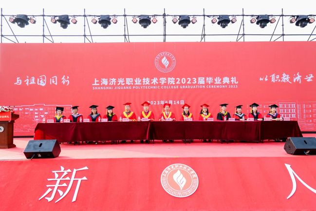 6月14日下午,我校2023届毕业典礼在宝山校区风雨操场隆重举行,校领导及助理、各学院党政负责人、职能处室负责人、教师代表及毕业班辅导员、毕业生代表、家长代表、校友代表出席,副校长王云飞主持毕业典礼。这一场有温度、有情怀的毕业盛典同时通过线上云端直播和线下同步进行,为即将扬帆远航的学子吹响起航的号角,让2023届毕业生与全国各地的济光师生相约此刻,同频共振,共襄盛典。