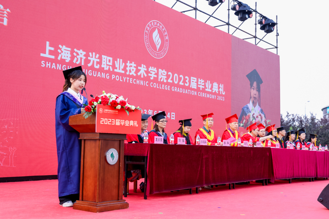 校党委副书记刘丽宣读了年度上海市优秀毕业生和校级毕业生表彰名单。今年学校共有74名同学被评为“2023年度上海市普通高等学校优秀毕业生”,124名同学被评为“2023年度上海济光职业技术学院优秀毕业生”。
