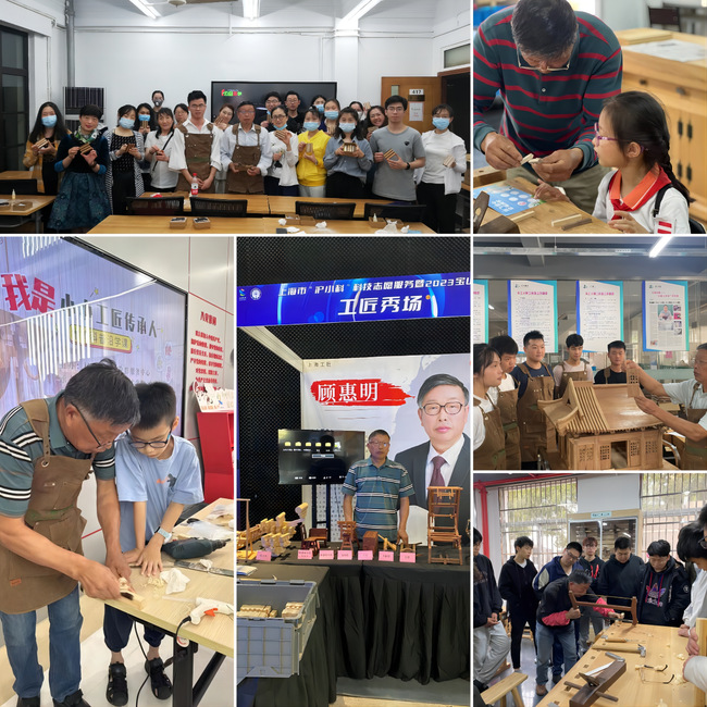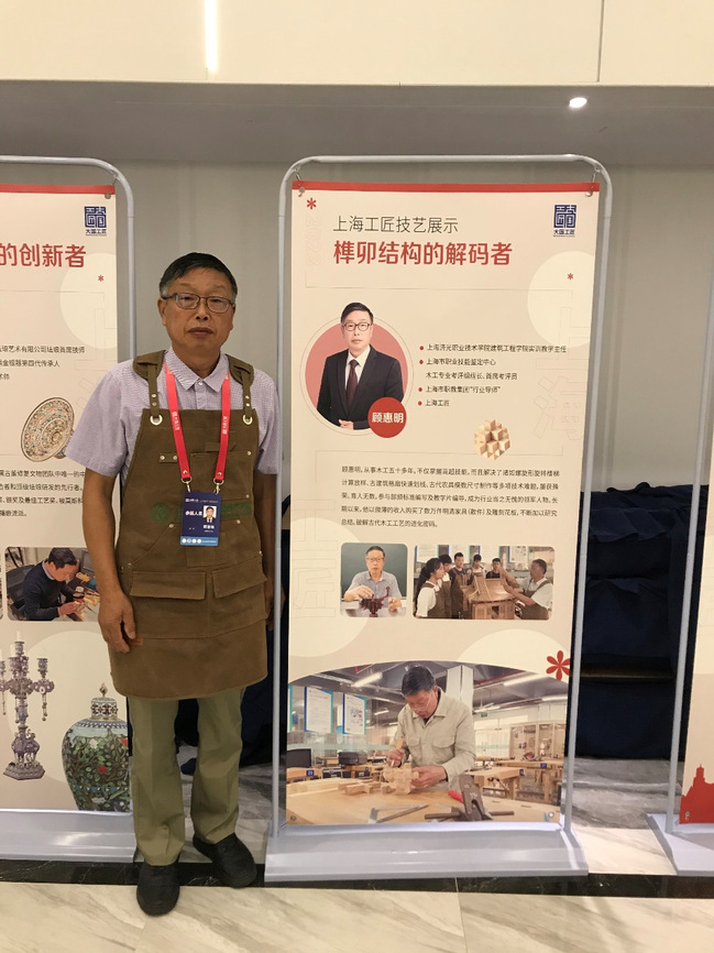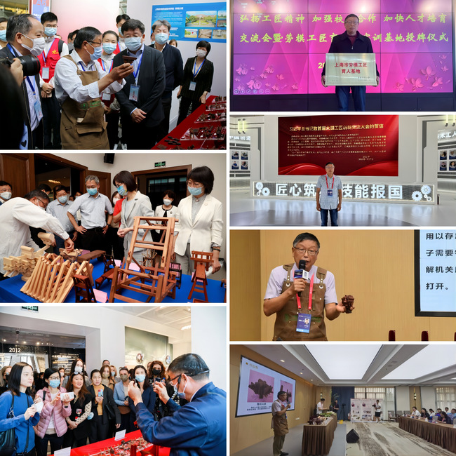由中华全国总工会、中共北京市委、北京市人民政府共同主办的第二届大国工匠创新交流大会暨大国工匠论坛于7月28日-30日在北京圆满举行。大会以“匠心筑梦,技能报国”为主题,旨在大力弘扬劳模精神、劳动精神、工匠精神,激励广大职工群众在以中国式现代化全面推进中华民族伟大复兴的新征程上再立新功。上海市高职院校唯一参会嘉宾——我校劳模工匠育人基地负责人,木工大师工作室,教育系统关工委先行先试基层组织代表,校“五老”指导团成员,上海工匠顾惠明大师在大会上进行榫卯结构技艺展示,吸引了全场。他对工匠精神的深刻理解,以及带着现场的微缩经典榫卯十二式和折叠背靠椅、行军桌、微缩鲁班凳等创新作品让人啧啧称赞。