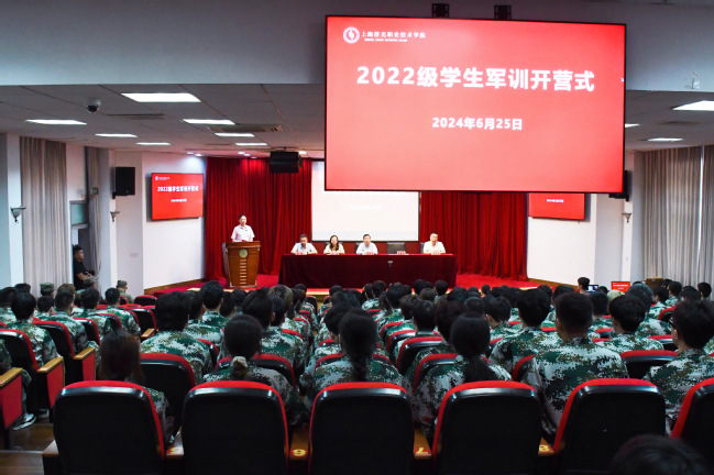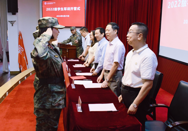 6月25日,2022级学生军训正式开营,主会场设在报告厅,各连队在班级通过雨课堂直播参与。校长胡展飞、党委书记姜富明、党委副书记刘丽、副校长王云飞、校长助理姚桂芳、武装部部长毛燕静、各二级学院党总支、直属党支部书记、所有承训教官、随训教师出席本次开营式。开营式由军训团团长马向前主持。