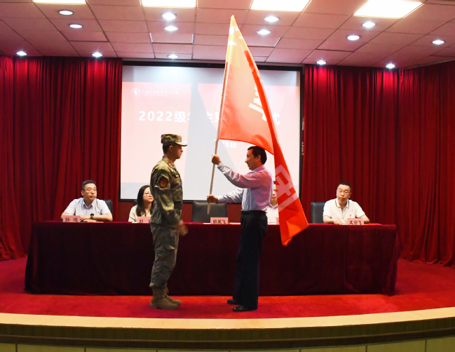 随着雄壮的国歌声起,2260名学生济光学子统一着装,意气风发,精神饱满,斗志昂扬。随后,校长胡展飞给军训团授旗。