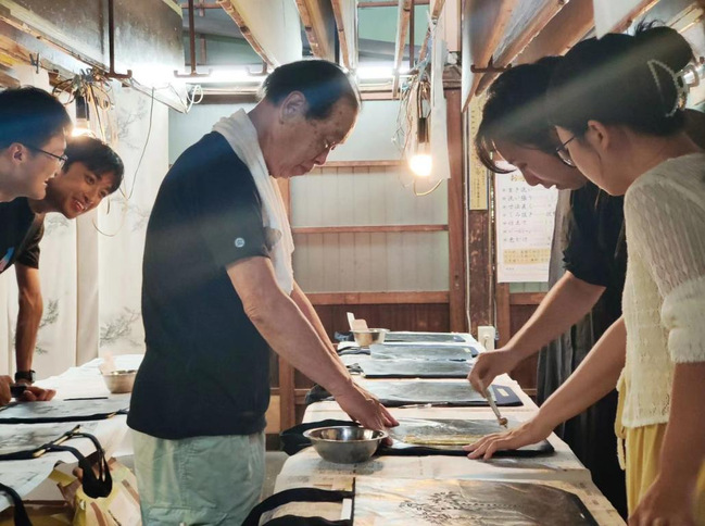 在东京染织工坊学习体验型染工艺,师生实地观摩了整个工艺流程,工坊老师为中国师生详细介绍了工艺的传承与创新。师生还赴东京艺大染织工作室桂川美帆老师的工作室,艺术家桂川美帆首先详细介绍日本友禅染并做现场技法示范,并与师生做了热情交流。