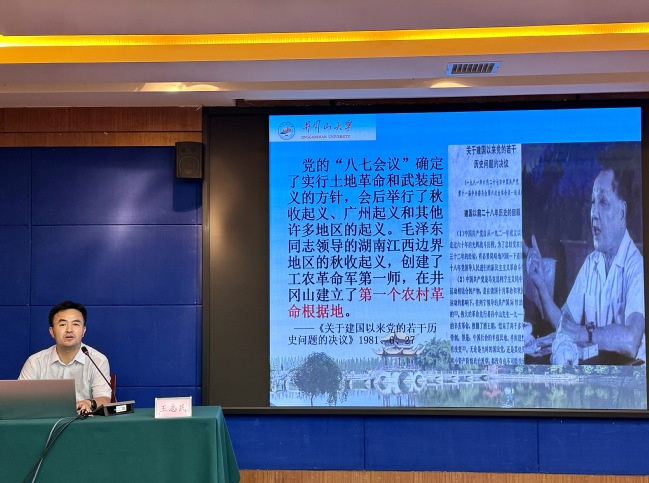 开班仪式结束后,井冈山大学继续教育与培训学院副院长王志民为培训班学员讲授题为《井冈山斗争与井冈山精神》的专题党课,从井冈山的历史地位、井冈山革命根据地的基本概况、井冈山革命根据地的历史划分、弘扬井冈山精神以及井冈山精神的时代价值等五个方面出发,深刻剖析了井冈山斗争与井冈山精神。