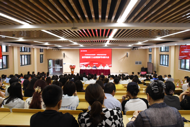 胡展飞校长在讲话中回顾了2023-2024学年以来学校取得的主要成绩,充分肯定了广大教职工在学校事业发展中付出的辛勤努力和作出的突出贡献,并作《学习贯彻党的二十届三中全会精神 进一步深化教育综合改革为中国式现代化贡献济光力量》重要讲话。胡展飞校长指出,学校要进一步深化教育综合改革,对标党的二十届三中全会精神,对表即将召开的全国教育大会要求,把服务经济社会发展作为学校“强、特、优”的路径,在服务区域经济发展,支撑国家重大产业发展,助力大国外交上强力推进学校高质量改革发展。胡展飞校长围绕人才培养、专业建设、创新服务、师资队伍建设、社会服务、管理服务保障、校园安全等方面,对学校新学期重点工作进行部署。他强调,一是围绕提升“强服务能力、强贡献能力”,对发展目标定位、专业布局体系、教师队伍建设、人才培养模式、创新服务能力、内部治理机制等做好再检视、再优化,着力在新一轮综合改革中抢占先机、实现突破;二是不断加强专业布局体系建设,控招生结构规模,对传统专业进行调整升级,对接三大先导产业,紧跟教育部提出的“三个体系”而“走”,围绕“四新”经济急需人才标准要求而“转”,紧盯需求进行专业布局;三是强化改革关键支撑,深化认识人才制度改革,要对照专业布局体系,构建与之匹配的教师队伍优良结构,改革教职工评价考核机制,优化用人机制,注重人才引育;四是不断深化人才培养模式和课程教学改革,面向国家、区域经济社会发展和新质生产力的发展要求,精准培养新时代高质量现场工程师和技术技能人才,在专业结构优化、特色品牌、课程体系、教学内容、教材选用与建设、师资队伍、实习实训、解破瓶颈与顽疾、保障机制体制等方面进行综合改革,研究制定AI赋能人才培养和技术技能创新改革行动计划;五是进一步完善教职工薪酬机制,要完善彰显绩效导向的分配机制,将薪酬分配同绩效紧密挂钩,把薪酬机制对教育教学改革的撬动和激励效应充分释放出来,把教职员工改革创新、攻坚克难的主动性、创造性激发出来;六是进一步完善“特色为要、贡献为王”的考核评价机制,以“解决关键技术技能”“市级及国家级项目和任务”“服务就业”“弘扬传统文化、促进文明发展”等为指标,重点评价教职员工“四个面向”的举措和成效;七是培根铸魂,全面落实立德树人根本任务,要坚持“以学生为本”,着力培养能够满足当前和未来行业需求,具有深厚家国情怀、工匠精神,具备扎实专业基础、优良综合素质的技术技能人才;八是落细落小落实学生实习实践、实训基地、基建修缮、校园安全工作,要以钉钉子精神,狠抓管理监督、安全风险防控、综合服务保障、运作机制完善等实实在在的工作,坚决守住安全底线。