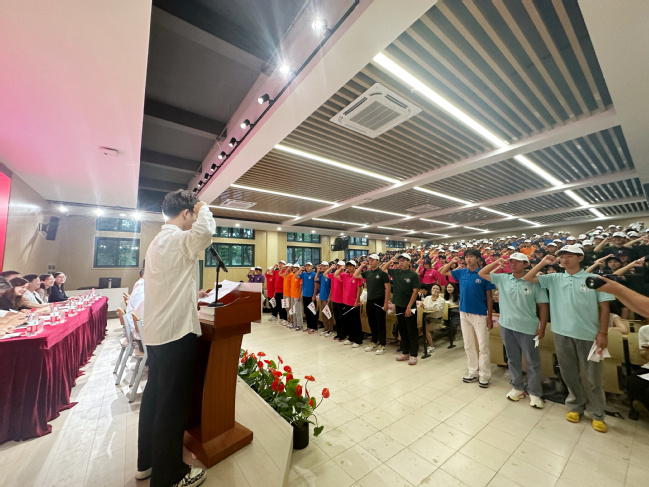 在雄壮的国歌声中,开学典礼拉开序幕。全体师生共同见证2024级新生们开启新的大学旅程。
