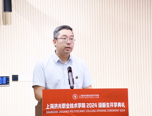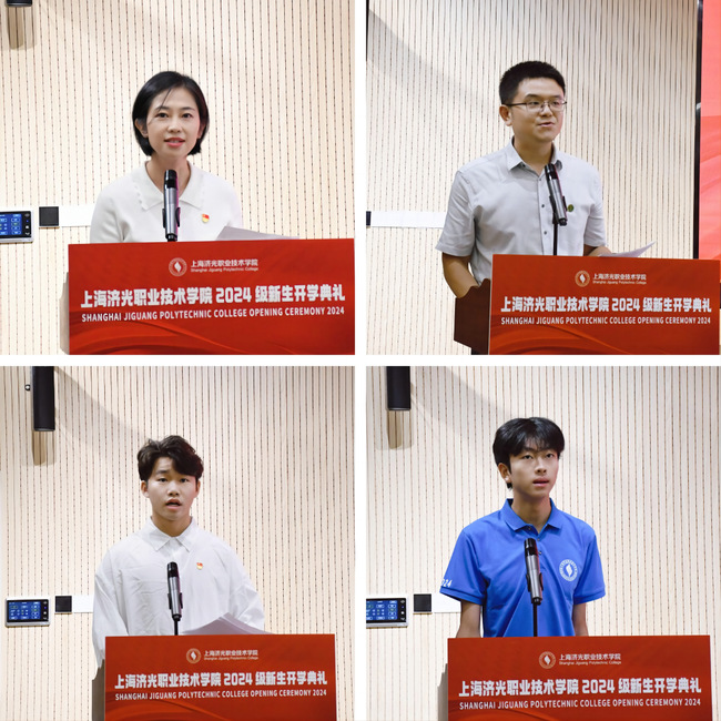 微言表大义,细语润心田。教师代表、人居环境与建筑设计学院段文婷代表全体教师发言,她表示新同学们要努力学习、保持自信,锻炼吃苦耐劳的意志品质,最终学有所成;学长代表、设计创意学院2022级广告艺术设计专业曾泊滔代表在校生发言,分享了在济光的学习历程和成长收获;校友代表、爱希里文化传媒有限公司运营总监、经济管理学院2008届报关与国际货运专业校友韩俊介绍了自己在母校的求学经历、毕业离校后的不懈奋斗,以及对母校的感恩、对新生的祝福;新生代表、人工智能学院2024级新能源汽车专业魏建卿表态,将脚踏实地地走好每一步,不负青春韶华。