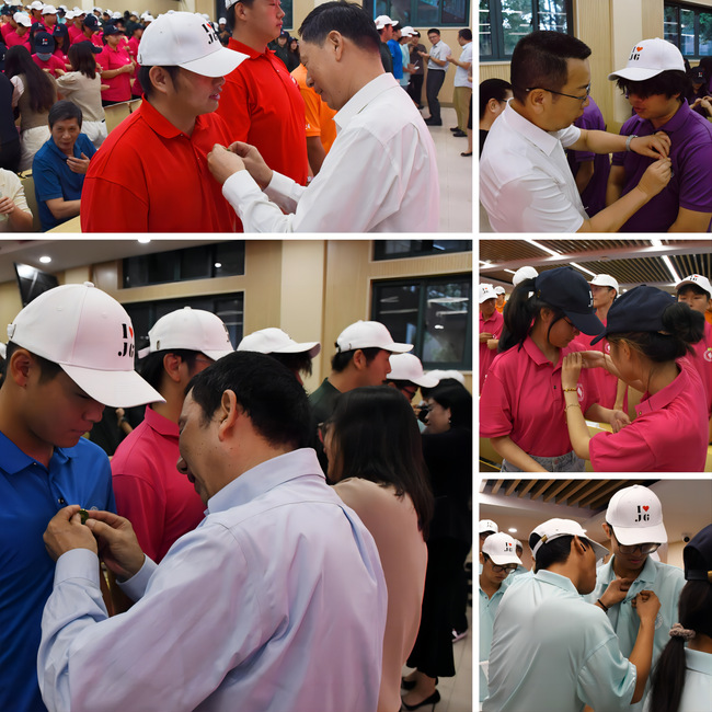 典礼上,主席台领导为新生代表逐一佩戴校徽,叮嘱新生立足新起点、筑梦新征程,弘扬和传承济光精神,争做新时代好青年。全体新生佩戴上崭新的上海济光职业技术学院校徽,并庄严宣誓:铭记“求实求新、人人成才”之济光校训,传承“同舟共济,公益办学,自强不息,追求卓越”之济光精神,文明敬业,矢志奋斗;爱党爱国,勇立潮头;为实现中华民族伟大复兴的中国梦而努力奋斗。