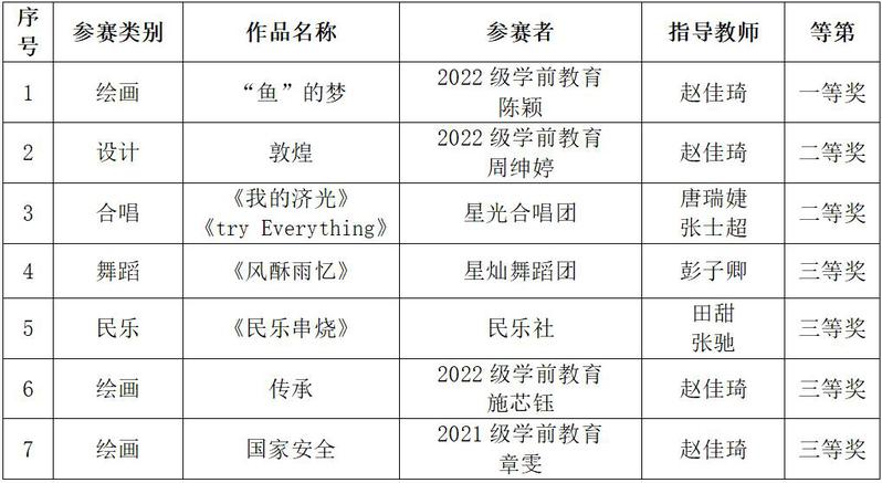 近日,第七届大学生艺术展演上海市活动评奖结果揭晓。在这场由教育部主办,每三年一度的艺术盛事中,上海济光职业技术学院以卓越的艺术表现和深厚的文化底蕴,斩获了令人瞩目的佳绩——我校报送的绘画、合唱、舞蹈及声乐荣获一等奖1项,二等奖2项,三等奖4项,共计获奖7项。