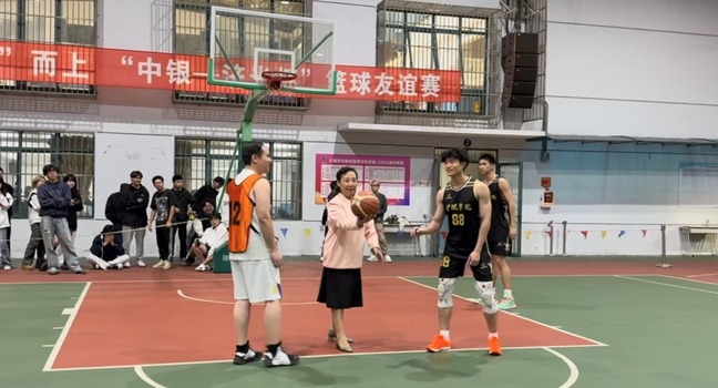 开赛前,张迺英院长发表了热情洋溢的讲话,她提到:中国银行宝山支行与济光学院有长达11年的校企合作。在长期合作过程中,双方开展了党建共建、技能大赛、捐赠帮困等活动。今天我们再次相聚在此开展第二届“中银—济光杯”篮球友谊赛,希望大家秉持友谊第一,比赛第二的准则,赛出友谊,赛出风采!