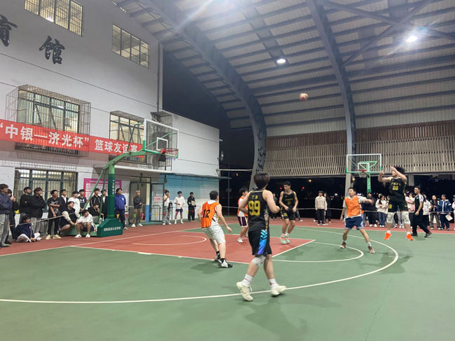 为进一步深化校企合作、增进学院间友谊,在与中国银行宝山支行党建共建的基础上拓宽活动内容,展现济光学子与校企合作伙伴们积极向上、勇于拼搏精神风貌,2024年10月22日晚,第二届“中银-济光杯”篮球友谊赛在风雨操场顺利举行,中国银行宝山支行、经济管理学院、护理学院篮球队参加了此次篮球赛。