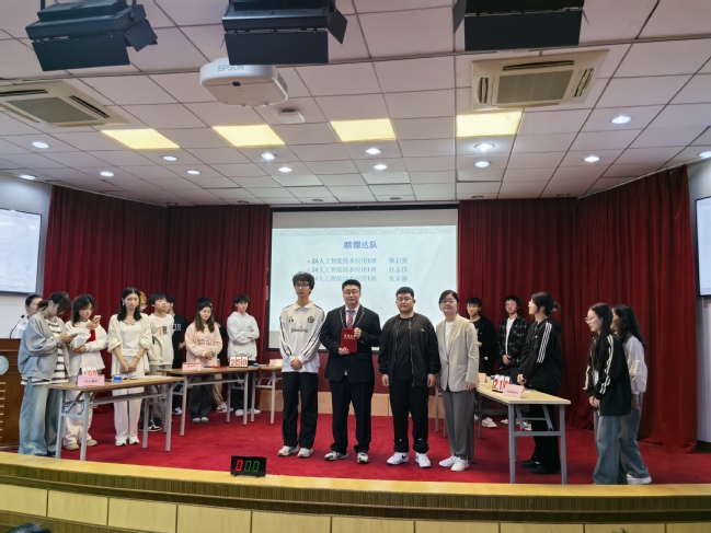 决赛于11月15日在宝山校区报告厅举行。比赛邀请了学工部处长助理陈栋老师、教务处王阳华、顾琳老师、基础部副主任滕永青作为嘉宾出席,约150名学生报名到现场观摩了决赛。决赛题目涉及中华优秀传统文化诸多方面,从经典诗文到历史典故,从传统节日到礼仪风俗,气氛十分紧张,各小队均严阵以待。经过必答和抢答环节后,各队分数虽有差距,但相差不大。场面情势从自由选择模块开始变化,有的小队答对了模块中的大部分题,得到了不少分数,有的小队则因分数落后,选择的模块并不擅长,导致分数开始落后。经过三轮题型比拼后。最终,2024级人工智能技术应用1班代表队凭借扎实的知识功底和大胆的答题策略,一举夺下本次决赛的冠军。