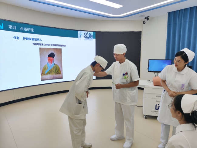 《基础护理实训》作为护理专业的一门核心课程,包括日常生活护理、疾病诊疗护理、生命支持护理等内容,是衔接临床的实践桥梁,亦是培育护生职业素养的重要平台。在备赛过程中,护理学院常务副院姚淳坐镇指导,四位教师深挖思政元素,探讨课程融入,听取学生反馈,并依托虚拟仿真实训基地先进的教学资源,使课程内容多元化。