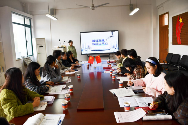 马克思主义学院专职思政教师贾须茹就本学期教学专题之一“加快发展新质生产力”进行了示范授课,随后刘骞教授和杨小勇教授从不同的视角对本次教学专题进行了详实的教学分享与指导,提出了宝贵建议,帮助教师讲好形策课。