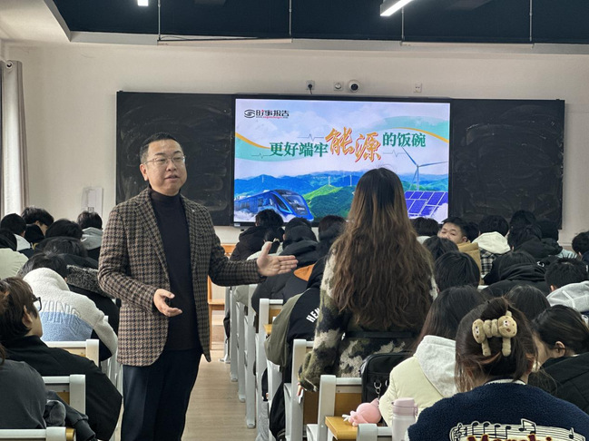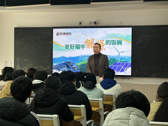 为贯彻落实教育部《关于加强新时代高校“形势与政策”课建设的若干意见》文件精神,坚持不懈用习近平新时代中国特色社会主义思想铸魂育人,12月12日,副校长王云飞以《更好端牢能源的饭碗》为题,围绕能源安全、社会责任、科技创新、大学生素质培养以及校园安全卫生等方面展开。