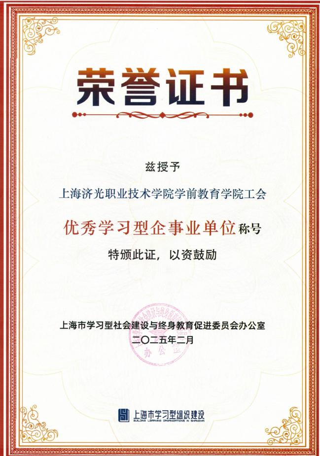 在深入学习贯彻党的二十大精神与习近平总书记关于建设学习型社会重要指示的背景下,我校工会积极响应上海市学习型社会建设号召,扎实推进学习型组织创建工作。经基层工会申报,校工会审议并推荐,上级单位多部门联合评审,学前教育学院工会于近日荣获“优秀学习型企事业单位”称号。今后校工会将持续深化学习型组织建设,围绕立德树人根本任务,开展多样化学习活动,全面提升教职工思想政治素质与教学科研服务能力,为服务教育强国战略和教育发展贡献力量。