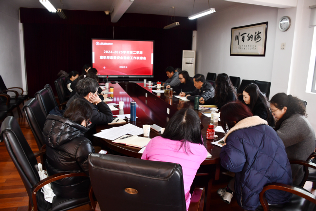 为进一步加强学校意识形态工作,扎实做好重要节点意识形态和校园安全稳定各项工作,坚决扛牢意识形态工作的政治责任,筑牢校园安全防线,3月6日上午,学校召开2025年意识形态暨安全稳定工作联席会第一次会议。校党委书记姜富明出席会议并部署工作,学工部、教师工作部、宣传部、组织部、后保处、教务处、团委、信息中心、工会、图书馆、继续教育学院、杨浦校区管委会负责人,各基层党总支、直属党支部书记等相关人员参加会议。会议由党委副书记刘丽主持。