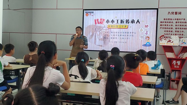 六年来,顾惠明团队根据专业特点开发木艺营造、榫卯结构与木艺等课程,组建济光木工专业社团,常态化开展劳动教育和实践育人工作,每学年服务校内学生达400余学时。依托上海市总工会“百名劳模工匠进校园”平台,顾惠明大师带领团队根据教授对象分年龄设置各难易度的实践项目,极大提升了参与者的获得感、满意度,增加了学生们对中华传统木艺文化兴趣,也加深了新一代对“匠人、匠心”的认识。目前,他的团队已为全市50多所大中小学开展木艺实践与体验活动150余场次,先后为上海市科技馆、群众艺术总馆、工人文化宫公益乐学等市、区级公共场馆和社区学校开设线上线下各类社会服务70余场次,受益青少年达5万余人。