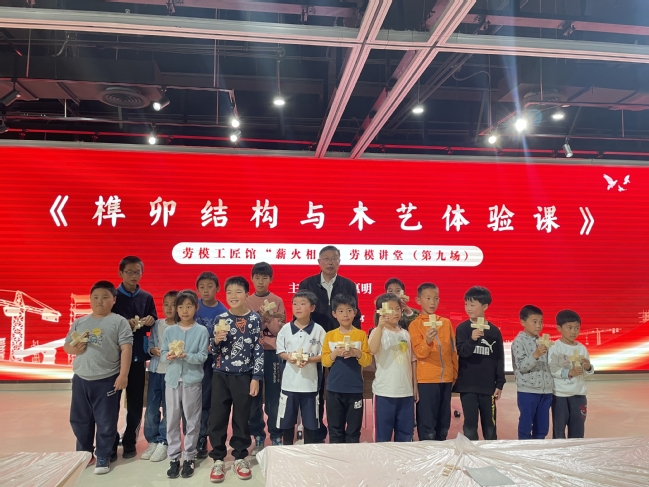 顾惠明团队将木艺绝活拍成教学视频,在智慧树平台上推广,其中以顾惠明与徒弟郁勇勇之间技艺传授为主题拍摄的《与木同承》,荣获2024年“为党育人,为国育才”身边的好教师微电影银奖。近两年,建筑工程学院先后荣获上海市教育系统关工委先行先试基层组织和“五好关工委”组织称号,劳动报以“匠心传承 人人成才”为题,整版报道我校劳模工匠进课堂及“五老”课程的主要成效。