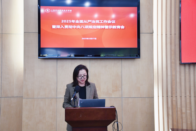 为深入学习贯彻习近平总书记关于党的自我革命的重要思想,学习贯彻二十届中央纪委四次全会、第二十八次全国高校党建会议精神,安排部署学校2025年全面从严治党重点任务和深入贯彻中央八项规定精神学习教育工作,我校于3月27日下午在圆形会议室召开2025年全面从严治党工作会议暨深入贯彻中央八项规定精神警示教育会。校领导,两委委员,学校深入贯彻中央八项规定精神学习教育工作专班成员,全体中层干部、各基层党支部书记、党组织纪检委员参加了会议。会议由校党委副书记、纪委书记刘丽主持。