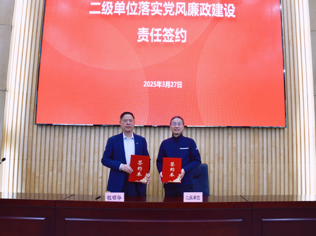 会上,党委书记姜富明、校长胡展飞与分管二级单位党政负责人代表签订了二级单位落实党风廉政建设责任书。