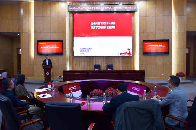 姜富明强调,要深入贯彻二十届中央纪委四次全会、2025年全国教育系统全面从严治党视频会议、第二十八次全国高校党建会议精神,要以更高的政治标准、更严的党性要求持之以恒加强作风建设;要坚持以案为鉴,及时纠偏校准,始终不越红线、不触底线、不碰高压线;要在全面从严治党上持续发力,深化政治监督,强力正风肃纪,锲而不舍落实中央八项规定精神,持续深化纠治“四风”,持续深化学校全面从严治党,围绕学校中心工作做好五方面工作:一是加强党的政治建设,持续加强党的创新理论武装,强化加快教育强国建设的政治担当,持续聚焦中央决策部署;二是强化组织保障,稳扎稳打地抓好基层党组织建设;三是加强党的纪律建设,把党的纪律内化为日用而不觉的言行准则;四是强化正风反腐,一严到底纠“四风”;五是强化责任落实,党政负责人要扛起第一责任人责任,领导班子成员履行一岗双责。