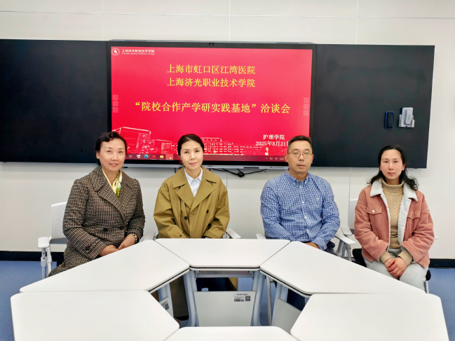面对2023级学生人数创历史新高(达715人)带来的实习与就业挑战,护理学院主动破局。在常务副院长姚淳的带领下,在全体教职工的齐心协力下,今年学院又新增三家校外实习基地:上海中医药大学附属曙光医院、上海市虹口区江湾医院、上海市第二人民医院,进一步拓展了临床实践教学资源,为护理高质量人才培养保驾护航。院校双方围绕“双师型团队共建”“数字化教学资源开发”等内容展开交流,共谋护理职业教育高质量发展路径。