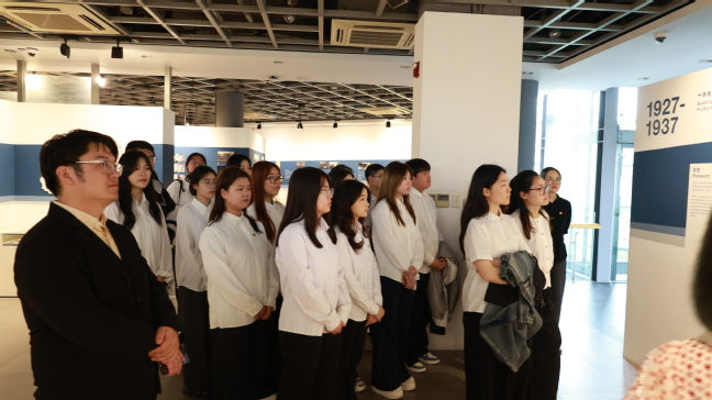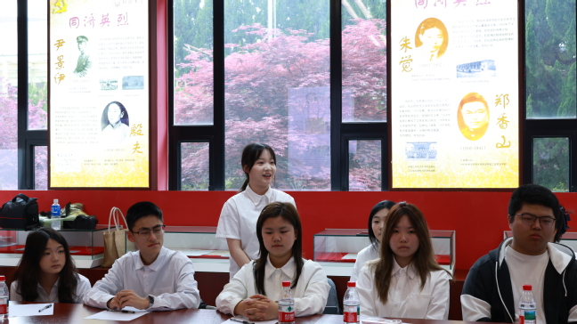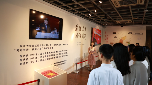 师生们从李国豪铜像出发,行走在同济的校园里,在清水红砖间感悟着这所高等学府散发的独特魅力,体会着波澜壮阔的百年同济校史。在同济大学学生会“一•二九”宣讲团负责人、校史馆学生讲解团团长刘宝乐同学的带领下,我校师生走进同济大学校史馆。一个个生动的故事、一张张生动的照片,把现场师生的思绪带入到同济大学一百多年来艰苦奋斗的发展史中。一代代同济人接续奋斗、拼搏进取的创校兴校历程,让师生在了解到了同济大学发展历程和辉煌成就的同时,也深刻领会到同济大学厚重的历史底蕴、浓郁的家国情怀,从而坚定理想信念,感悟初心使命,汲取前进力量。