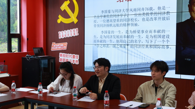 随后,同济大学学生会“一•二九”宣讲团季奕宏同学为济光学子开展了一场主题为《赤心筑梦 天堑成虹》的微宣讲,深情讲述了李国豪的生平事迹。“李国豪先生是‘同舟共济’同济精神的典范,他严谨求实、锲而不舍的治学理念,开拓进取、勇于创新的科学精神,热爱国家、奉献社会的崇高品格,有教无类、爱惜人才的宽广情怀充分彰显着‘大先生’魅力,不断引领着同济人继往开来、砥砺奋进。”同学们感慨万千,纷纷表示深受激励,“作为济光人,我们要传承好同济精神、发扬好济光精神,自信自强、勇于创新,在不懈奋斗中实现人生价值。”