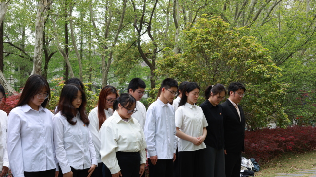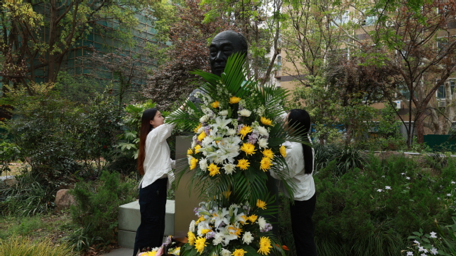 清风徐来,松柏肃立。怀着无比崇敬的心情,济光师生来到李国豪铜像前,学生代表向老董事长敬献鲜花,并轻轻擦拭他的铜像,以表达对李国豪老董事长的深切缅怀。校团委书记邓婷婷带领全体师生默哀一分钟,表达对“大先生”的崇高敬意和无限追思。