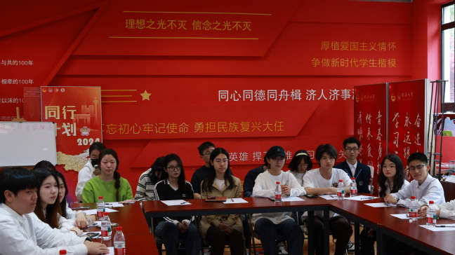 在本次实践活动中,同济学子和济光学子进行了亲切交流座谈。同济大学学生会执行主席张郑涵同学代表同济大学学生会对济光师生一行来到同济大学表示欢迎,对学生会基本情况进行了简要介绍,并结合实际团学工作进行了经验分享。