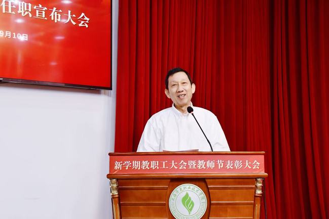 9月10日上午9:00,校级领导干部任职宣布大会在学校报告厅召开。董事长周家伦出席会议宣布校长任命决定并讲话。会议由校党委书记姜富明主持,全校教职员工参加了会议。