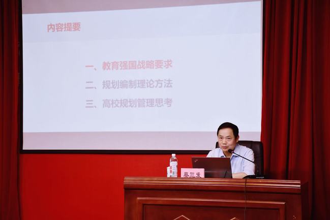 报告中,蔡三发以“教育强国战略下高校的使命与规划担当”切入,紧扣国家教育改革发展的核心部署,用宏观视野剖析战略目标与高校发展的内在关联,同时他结合自身参与同济大学规划编制的实践经验,详细梳理战略规划制定的“原则、重点、内容”框架,提出具体可操作的制定路径。