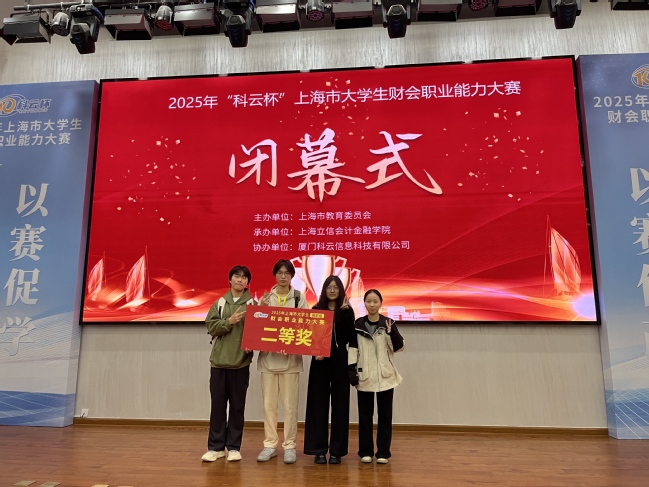 2025年11月9日,“科云杯”上海市大学生财会职业能力大赛在上海立信会计金融学院举办,我校经济管理学院会计学生团队荣获二等奖。