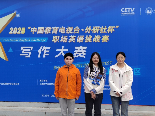 近日,2025“中国教育电视台·外研社杯”职场英语挑战赛写作大赛上海赛区比赛在上海电子信息学院举办,我校派出参赛队伍获得了优异的成绩。