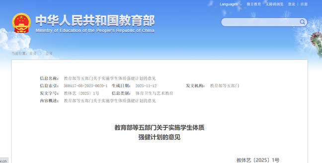 教育部等五部门关于实施学生体质