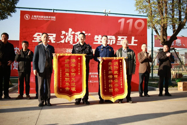为增强全体师生的消防安全意识,提高自救防范能力和紧急疏散能力,筑牢校园安全“防火墙”,我校围绕“全民消防、生命至上”安全月主题,于11月25日、26日分别在宝山校区、杨浦校区组织开展了2025年消防应急演练。校长贺鹏飞、党委书记姜富明、副校长王云飞和相关师生参加了演练,宝山区消防支队、杨行镇政府平安办、杨行派出所相关领导莅临现场指导。12月26日,《宝山新闻》栏目对此次应急演练进行了专题报道。
