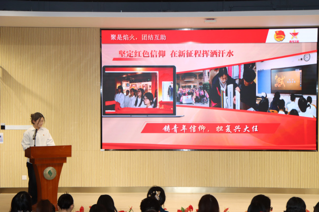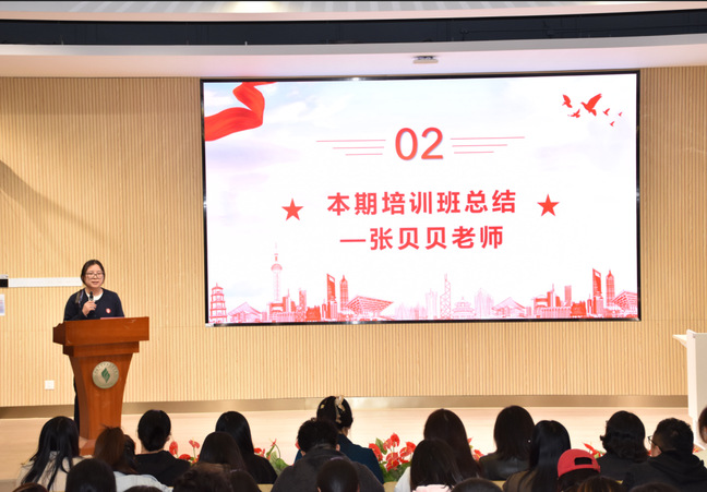 典礼伊始,本期培训班马院负责教师张贝贝作工作总结。她回顾了本期“青马工程”的培养历程与显著成效。本期培训班由校党委统筹领导,马克思主义学院与团委、各二级学院协同育人,共招募选拔109名学员。培训期间,通过邀请同济大学专家开展系列理论讲座、组织观看《中国式现代化》政论片、赴中共一大二大会址、四行仓库纪念馆等红色教育基地开展实践研学、结合专业特色开展志愿服务以及组织学员深入班级、团支部、社团进行理论宣讲等多种形式,构建了“理论研习+实践赋能+交流互鉴”的一体化培养体系,有效筑牢了学员的信仰根基,厚植了家国情怀。经过严格考核,108名学员顺利结业。张贝贝老师表示,将认真研究学员们反馈的宝贵建议,如希望加强理论与日常学习生活的联系、增设方法论与专业结合的专题等,不断优化后续培养方案。